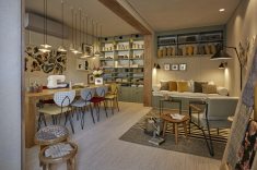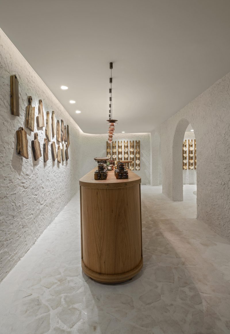 Esqueça os armazéns convencionais. Aqui, a proposta é de um armazém boutique, que apresenta de forma peculiar, uma vitrine com uma seleção com o que há de melhor em Minas, para explorar experiências sensoriais, com destaque para o paladar e o ofalto. As curvas da arquitetura interna, com teto abaulado, lembram porões, lugares propícios para a cura da cachaça. O diferente é que, em vez da penumbra desses ambientes, é tudo bem claro. No piso branco, pensado como elemento da arquitetura mineira, foi utilizado refugo de pedras naturais, aqui, trabalhadas à mão, de forma bem artesanal, levantando a questão da sustentabilidade e reforçando o conceito e a história de cada produtor e o cuidado por trás da produção de cada item exposto. Nas paredes, também brancas, a textura lembra um reboco rústico. O mobiliário, desenhado pela arquiteta, tem o em freijó como elemento principal, entre mesas de canto de parede, bancadas de exposição e guarda-estoque em forma orgânica, suportes de madeira para queijos, prateleiras e um grande balcão de venda e exposição dos produtos. A iluminação embutida na maior parte do espaço conta ainda com o charme de os pendentes sobre o balcão. O projeto conta com a parceria do Sebrae-MG, idealizador do projeto Origem Minas que apresenta uma seleção de produtos do agronegócio regional para o espaço.