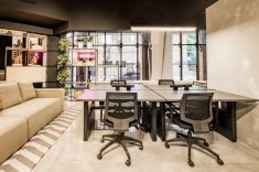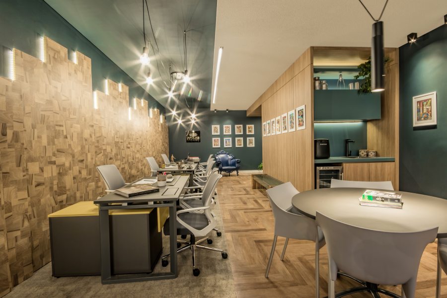 Com a proposta de oferecer um espaço funcional que propicie o compartilhamento de ideias, o premiado escritório Bender Arquitetura assina o espaço de 93m² com uma concepção inovadora. O ambiente possui paleta de cores neutra, a fim de estimular a fluidez dos pensamentos, com destaque para o sofá modular elétrico e as mesas automatizadas. Além da cuba em aço inox da Deca, um dos lançamentos do ano. A iluminação com o Tensoflex e a área “instagramável” também chamam atenção no coworking.