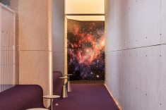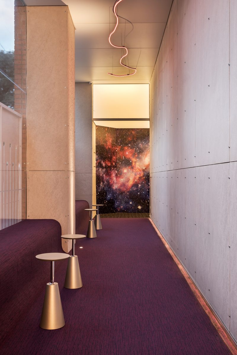 Em seu primeiro ano de CASACOR Paraná, os arquitetos Ana Carolina Boscardin e Edgard Corsi, do Studio Boscardin.Corsi, apresentam o espaço Selfie Point, voltado para o registro dos visitantes da mostra. O ambiente de 55m² traz projeções futuristas na medida em que utiliza materiais tecnológicos e retrata a beleza e as incertezas do Universo. Partindo do conceito “Planeta Casa”, que norteia a exposição deste ano, os profissionais se questionam sobre como seria a relação da humanidade com um possível novo planeta que ela venha habitar. Destaque para o neon vermelho que guia o visitante ao intimista “Selfie Point”; para as esferas suspensas que remetem aos astros; e para a tela tensionada e iluminada, que oferece conforto visual e funciona como um elemento interessante e diferenciado para os registros fotográficos. Entre os materiais, sobressaem-se as paredes executadas em steel frame e revestidas com placas cimentícias sem acabamento – técnica sustentável uma vez que não gera resíduos e permite reuso. O forro em MDF segue a modulação das placas ao apresentar desenho em linhas, e o painel vazado metálico, recortado a laser, tem desenho exclusivo e lembra um skyline de vegetação.