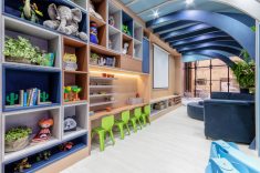 O espaço de 44m² proporciona às crianças uma experiência sideral a partir do uso de cores alternativas e décor dinâmico. A integração de um aquário e oficina de plantas são os detalhes que dão vida ao ambiente, propiciando o contato com a natureza, alinhada ao conceito “Planeta Casa”, tema da CASACOR deste ano. Pérgolas em forma de cúpula, almofadas de nuvens e esferas recapadas com tecido em balanço são usadas para a composição de um refúgio lúdico e criativo. O espaço utiliza elementos de lançamento exclusivo que compõe, com excelência, a área de entretenimento. O contraste entre a tecnologia e a natureza, aplicadas em um ambiente interno, trazem design dinâmico e afetivo que permite o despertar da imaginação e criatividade, caraterísticas peculiares e essenciais em toda criança.