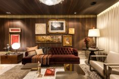 As arquitetas Clarice Volpi e Simone Volpi Zoller, da Volpi Arquitetura, assinam o Office do Empresário. Pensado para proporcionar praticidade e conforto, o espaço possui o necessário para que o profissional desempenhe suas atividades de maneira efetiva e obtenha o melhor aproveitamento dos 38m². A inspiração surgiu das inovações arquitetônicas de Singapura, estilo moderno que influenciou o conceito contemporâneo do office. A marcenaria imponente é um forte traço do projeto, que tem como ponto alto a mesa. O móvel, desenvolvido exclusivamente para a mostra, é considerado uma obra de arte pela grande escultura que forma. Esses traços orgânicos chamam ainda mais atenção ao se encontrarem com as linhas retas do espaço. Diferentes texturas como couro, laca e madeira finalizam o décor.