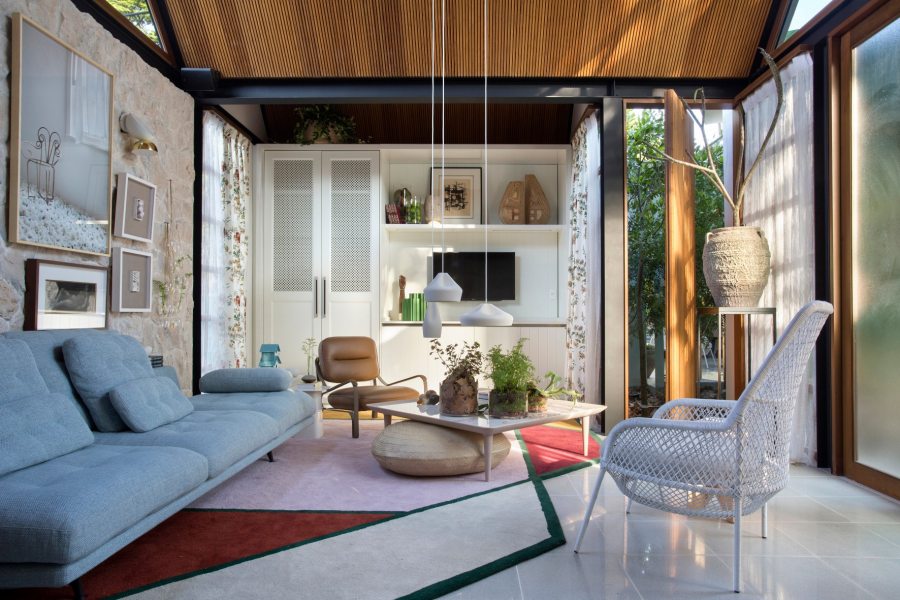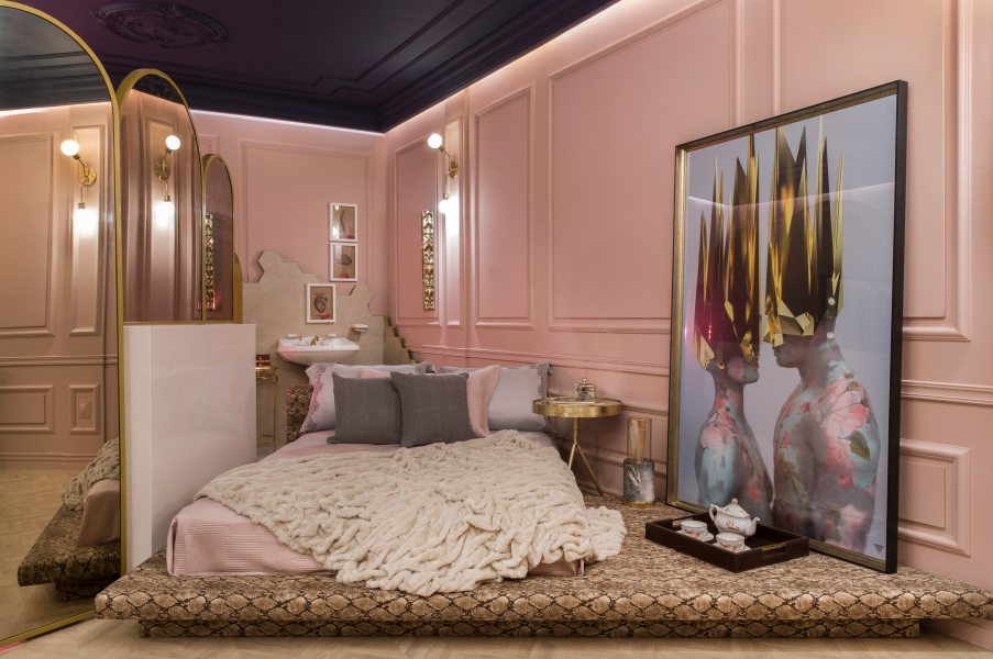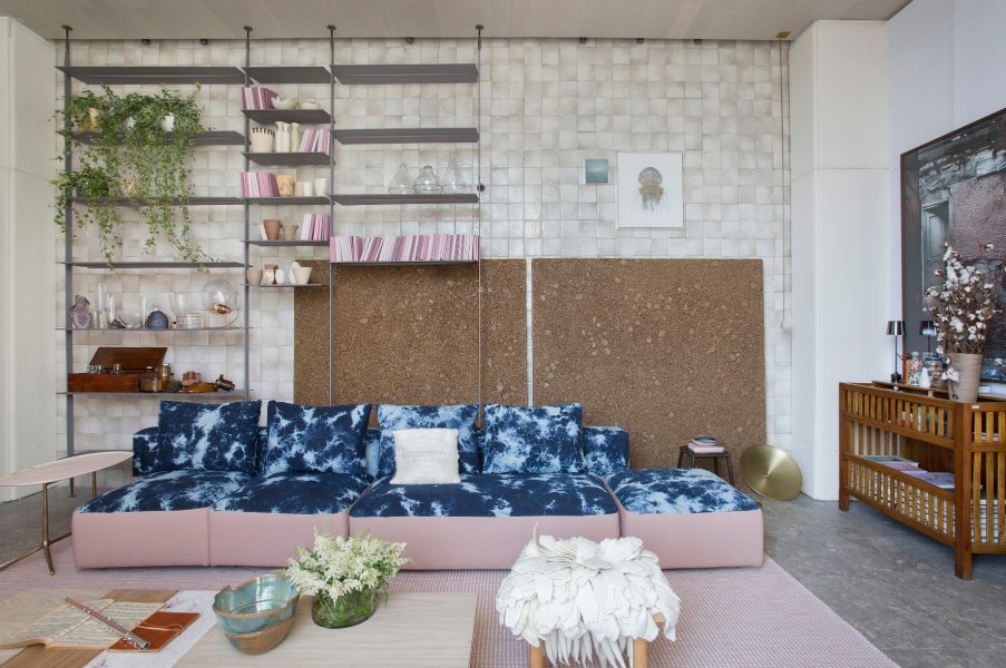 Em sua primeira participação na CASACOR, a designer traz sua interpretação do tema A Casa Viva para um loft de 43 m² cujo nome remete à trama da vida: “Aqui historias e sentimentos se conectam. Uma casa é muito mais do que moveis e decoração”, conta Milena. As referências à trajetória da moradora aparecem em objetos bem pessoais, como fotos, sapatos e uma xicara antiga. No piso e nas paredes, as tramas se materializam ora em estampas no ladrilho hidráulico, ora na peca em tom rosa assinada pela artista Nao Yuasa.