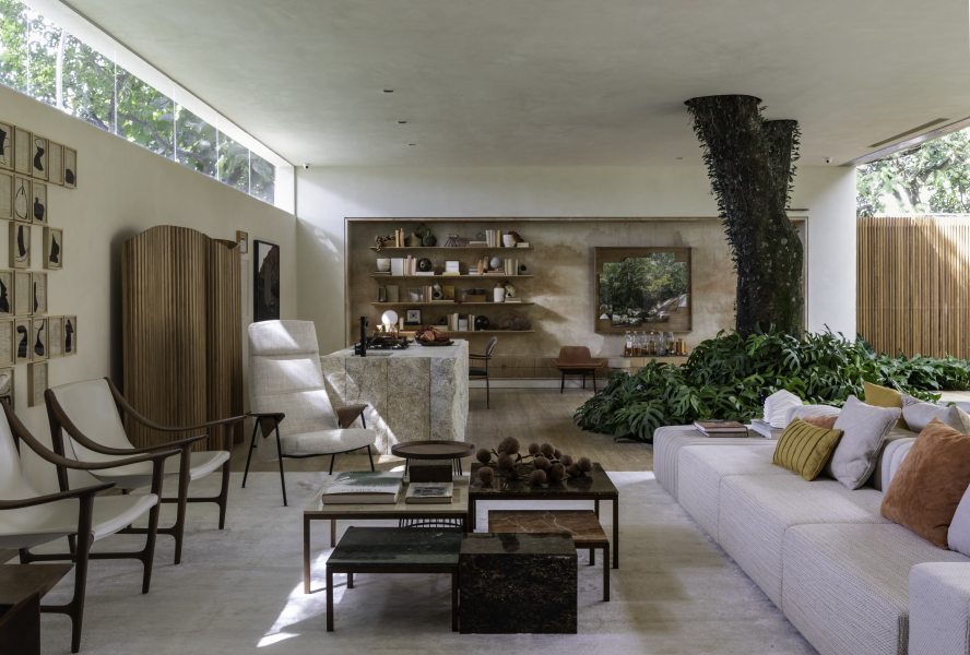 A presença majestosa de uma arvore flamboyant no espaço designado ao ambiente do escritório Suite Arquitetos foi determinante para a criação da casa, que inclui jardim nos seus 300 m². “Decidimos levar as referências da natureza para as áreas internas. Por isso, usamos diversos tons terrosos nos revestimentos e nos moveis”, conta a arquiteta Daniela Frugiuele, que assina o projeto com Filipe Troncon e Carolina Mauro.