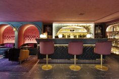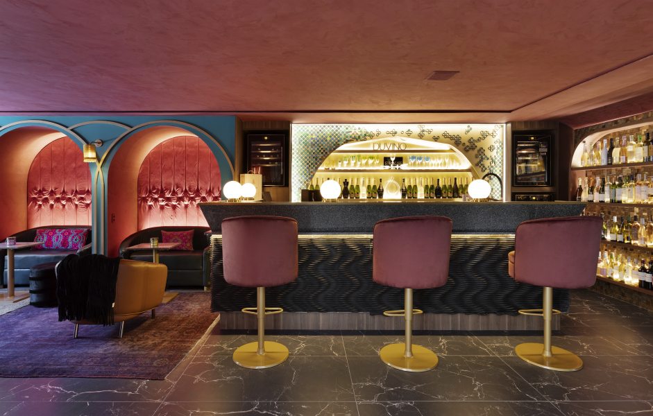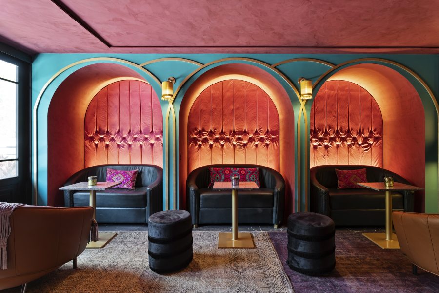 A intensidade do vinho e toda a energia de Marrakech, conhecida como a "Paris do Saara", aparecem nos detalhes minuciosos em cores escolhidas conforme as sensações que despertam. A começar pelo teto e parede dos arcos, que receberam a cor Vinho Sofisticado desenvolvida especialmente para o espaço, oefeito de cimento queimado e a parede de boiserie traduzem os tons característicos de Marrocos. O tom de vermelho Pitanga Madura, o verde Jóia da Coroa e o Ouro completam a cenografia do wine bar.