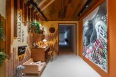 Camadas de cores e texturas que representam a diversidade do Brasil dão o tom ao ambiente Camadas Brasileiras, de autoria da arquiteta Juliana Pippi. As nuances terrosas aparecem nas tramas por todo o espaço. A contar pelo teto tingido com a cor lançamento da Coral, batizada de "Camadas Brasileiras'', e utilizada como elemento de arremate e equilíbrio.