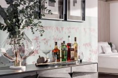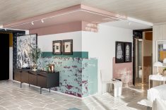Propositalmente suave, o Cosmopolitan Loft, criado pela arquiteta Mariana Pesca, transmite leveza e aposta em duas paredes trabalhadas pela artista plástica Camila Saavedra para um complemento expressivo.