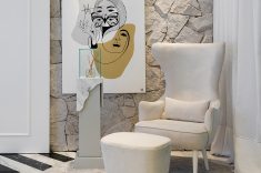 Quem também optou por fazer um ambiente monocromático foi o arquiteto Leandro Sumar, convidado a projetar a Casa de Aromas da Mels Brushes. "Criei um espaço com diversos estilos, revelando o clássico, o rústico e o industrial, todos eles harmonizados numa base neutra. As cores ganham notoriedade na arte de Lucas Gonçalves, que a pedido, criou algo que traduzisse o conceito da loja", ressalta.