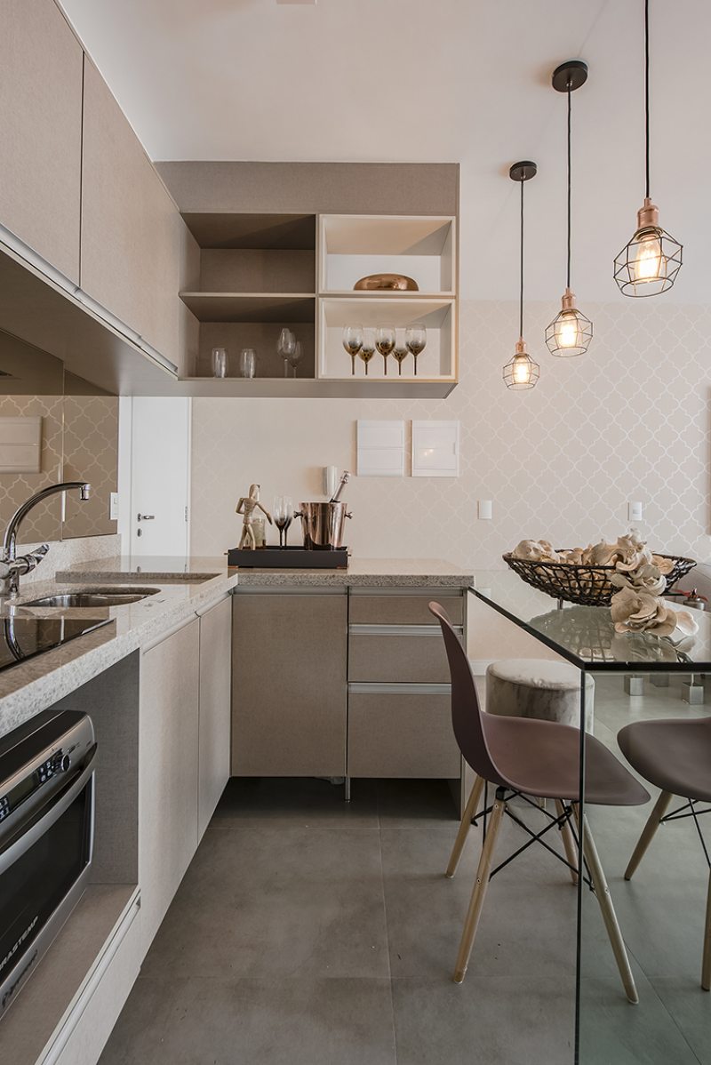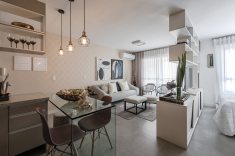 Desenvolvido pela arquiteta Amanda Mello, o projeto de interiores desse studio, localizado em Curitiba-PR, segue o conceito contemporâneo e foi pensado para uma jovem, que queria um apartamento funcional e que combinasse com sua personalidade. Com apenas 47m², o espaço conta com a integração dos ambientes e uso de tons claros para compor um projeto harmônico, que mescla elegância e conforto.