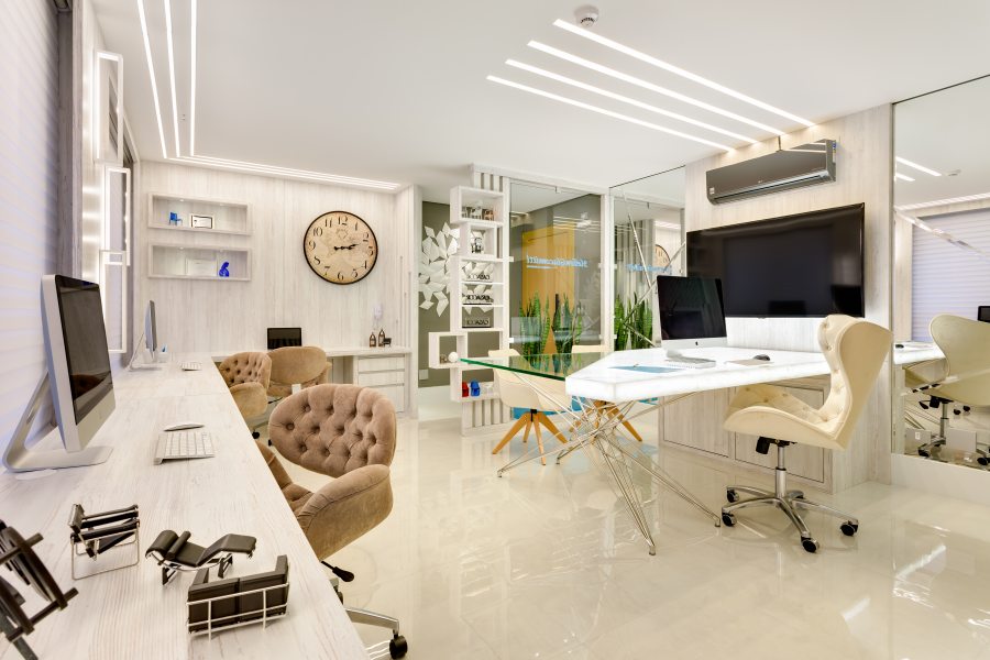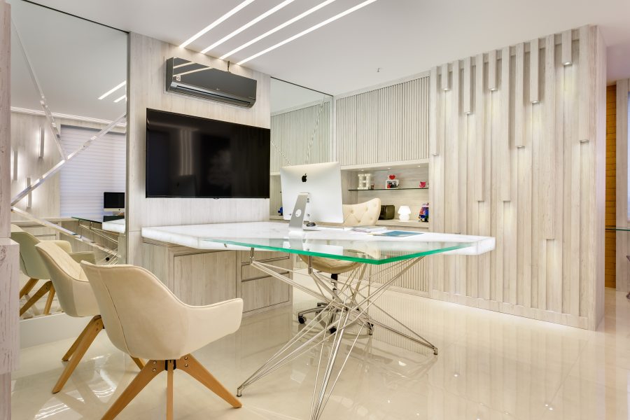 poupou esforços no décor de seu novo espaço: “Ter o escritório próprio é uma conquista imensurável, pois permite receber clientes em um lugar projetado e executado por você mesmo, com a sua cara”, conta. A sala comercial de 40 m2, situada no Cabral, em Curitiba, levou apenas quarenta dias para ser concluída.