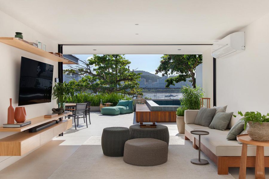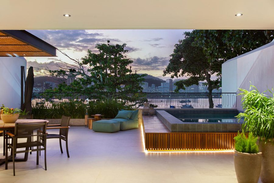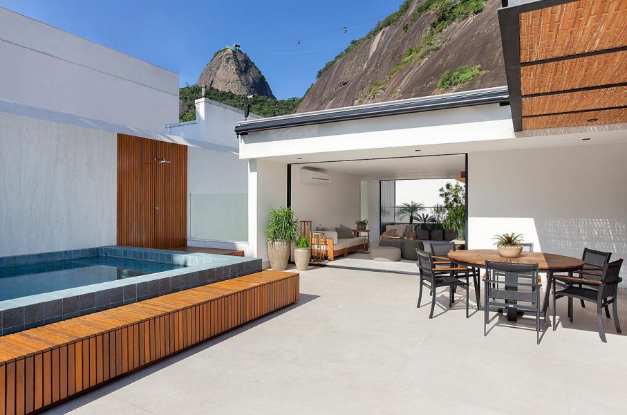 O prédio original, fechado há anos, foi reformado diversas vezes. Os espaços eram apertados e mal aproveitados. “Conversamos com os clientes e combinamos que o ponto mais nobre ficaria na cobertura, pois de lá teríamos uma vista deslumbrante da Baía de Botafogo, do Cristo Redentor e do Pão de Açúcar, além de maior privacidade e melhores condições de luz solar”, conta Maurício Magarão, que, juntamente com Alice Lindenberg, assina o projeto.