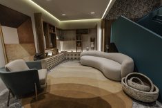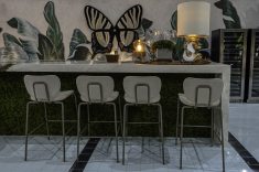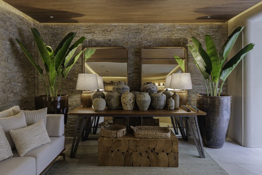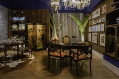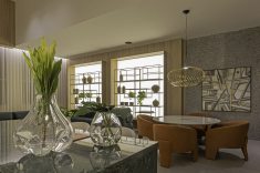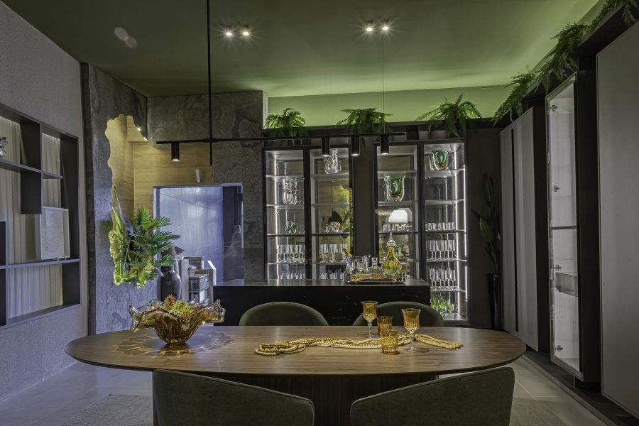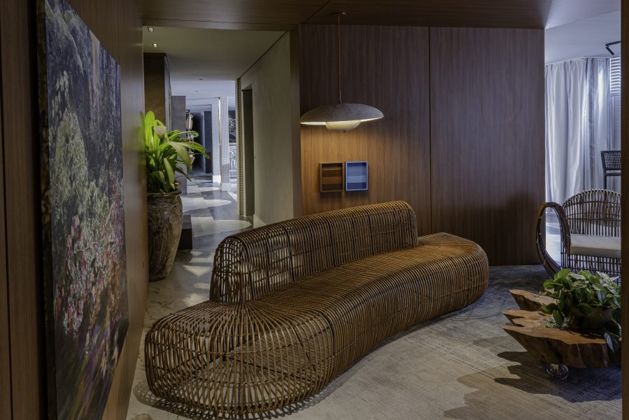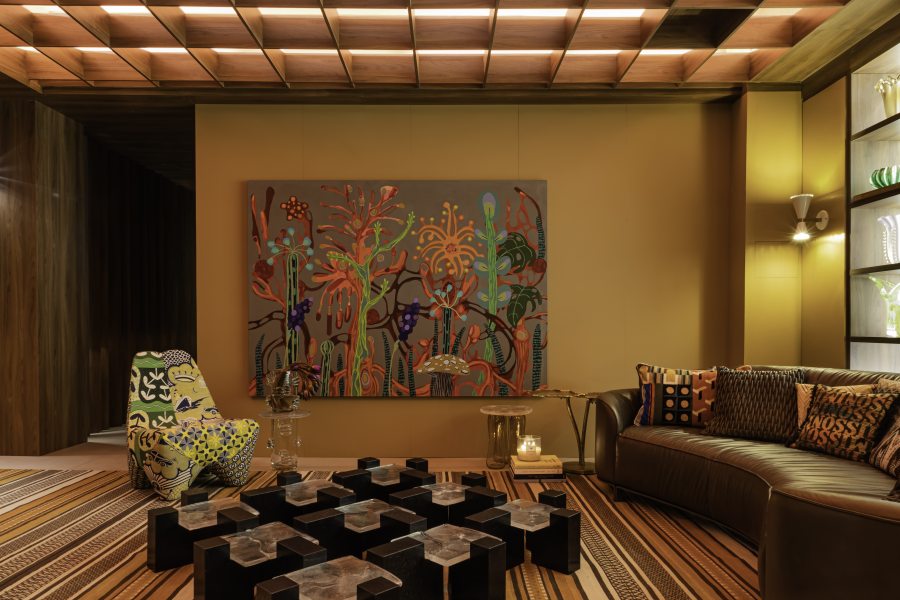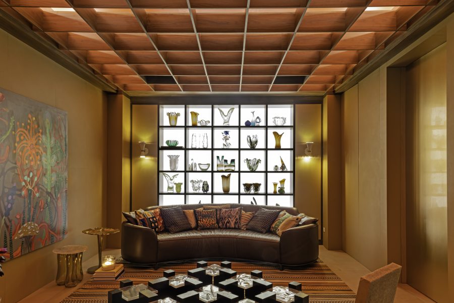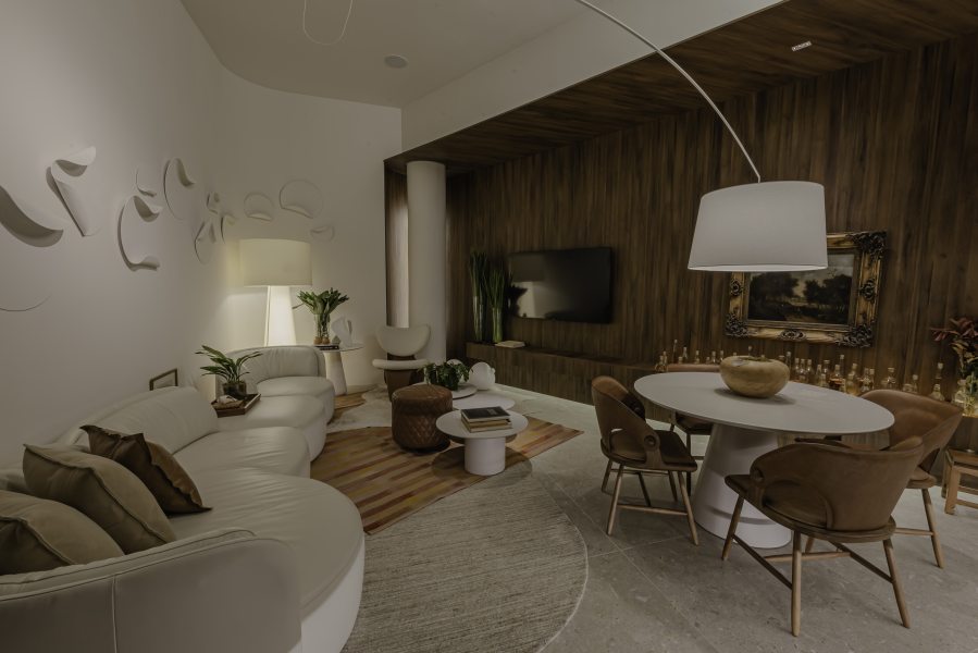 Cores, texturas e formas propõem uma sofisticada fusão do antigo com o novo. A mistura de materiais e o uso abundante de obras de arte e objetos com pegada artsy e a assinatura A Sense of Place dos dois escritórios, em que a cultura e a história servem de inspiração para todos os momentos passados ali, evidenciam o estilo ultraluxury adotado pelo trio. O arrebatamento visual fica por conta do emblemático mobiliário em murano, com DNA brasileiro e assinatura dos profissionais, desenhado especialmente para a CASACOR.