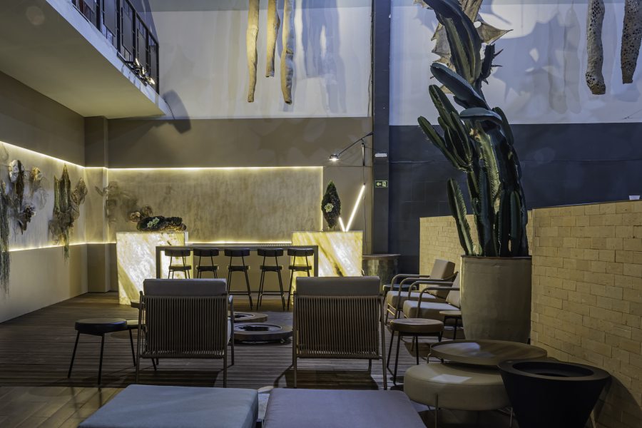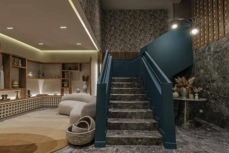 Modernidade e contemporaneidade. Marcado pela transição entre o exterior e o interior de uma edificação. O Hall Social – Portas Abertas é um convite de “boas vindas” ao setor residencial. Um ambiente marcado por expressões de força e acolhimento, trazendo um mix de materiais, composto por cores, texturas, formas orgânicas e linhas retas, a essência do ser humano; representando o nosso corpo, nossa alma imperfeita e a nossa morada.