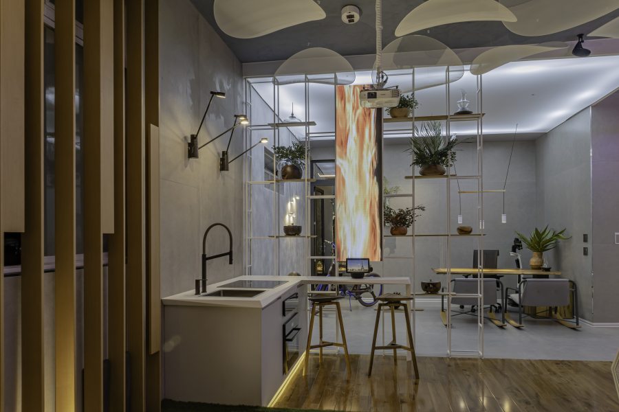 O HUB Smart Office é um espaço colaborativo que utiliza a estratégia de tecnologia sustentável, com o uso de materiais de qualidade, com baixo consumo de energia, que proporciona economia ao consumidor por meio do desenvolvimento de produtos e soluções mais eficientes e duradouras. Um ambiente sensorial organizado com o intuito de estimular os cinco sentidos e com o foco na experiência do usuário, planejado para mostrar o melhor da arquitetura aliada ao design.