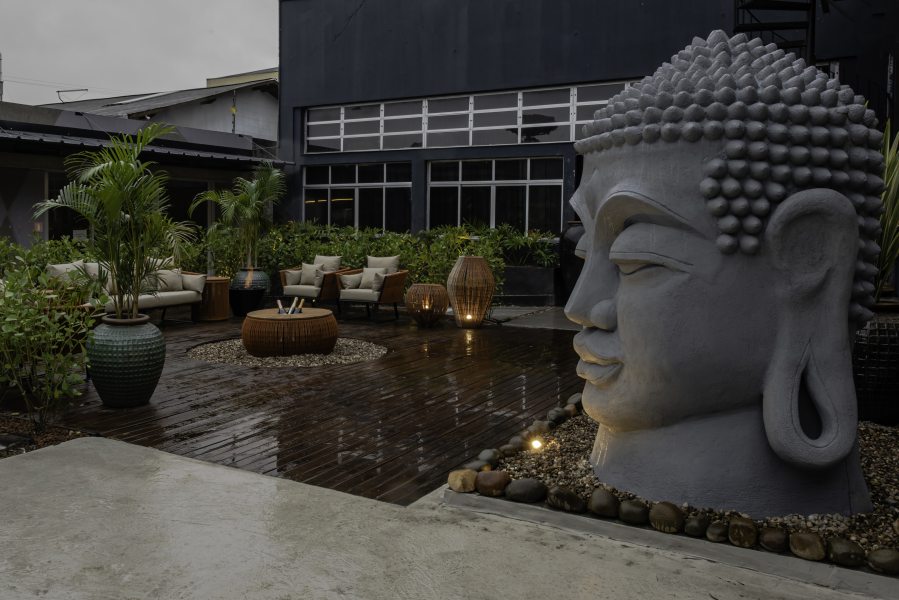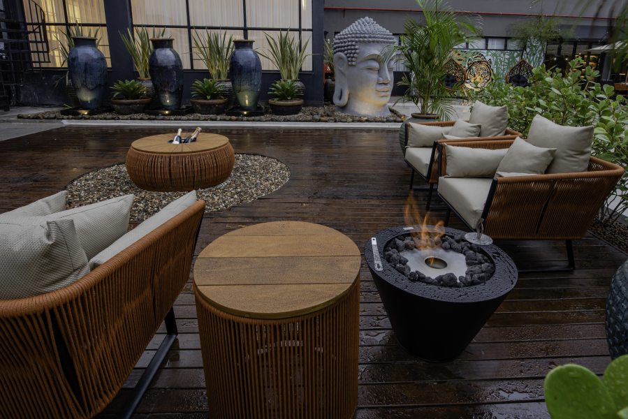 O espaço externo Pátio Conexões busca conectar as pessoas à natureza, onde o paisagismo remete a Bali através da madeira no mobiliário, plantas tropicais, bambus e fontes d’água, trazendo sensação de relaxamento e bem-estar. A arte de um tigre na parede representa a extinção do tigre de Bali e também outras espécies que atualmente estão em alerta de extinção na Indonésia. A concepção do ambiente é sobre a nossa relação de cuidado e afeto com o próximo e a natureza que é o nosso “Corpo e Morada”.