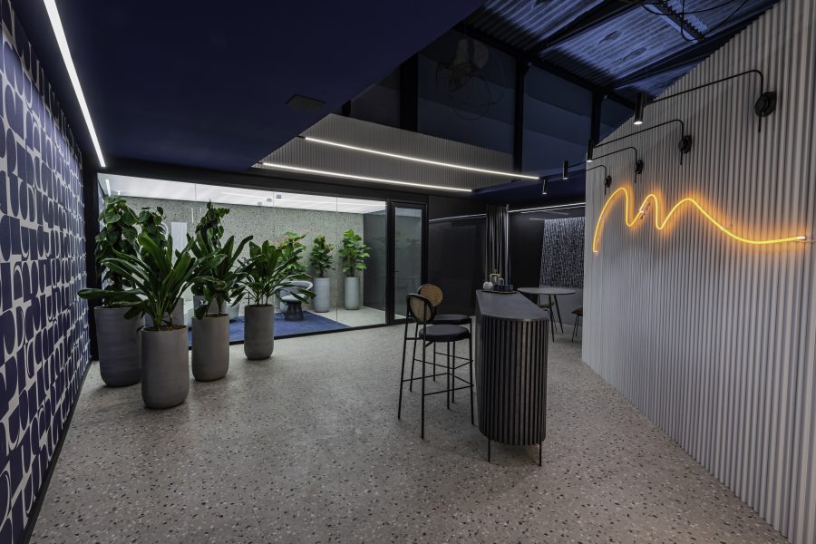 Visual contemporâneo, materiais sofisticados e acabamentos diferenciados: o espacço traz dinamismo visual de grande personalidade e se encaixa com uma área de descompressão. Espacço interativo com área multifuncional de videocast, podcast, cenografia para influencers e mídias tradicionais e disruptivas além de palestras e workshops. A “arena escritóro” coloca em pauta as áreas de gravações de conteúdos e entrevistas voltadas para um cubo acústico com infraestrutura técnica de produção de vídeo e conteúdo. Características visuais e sensoriais criam uma ambientação que equilibra informalidade, interação digital e versatilidade.