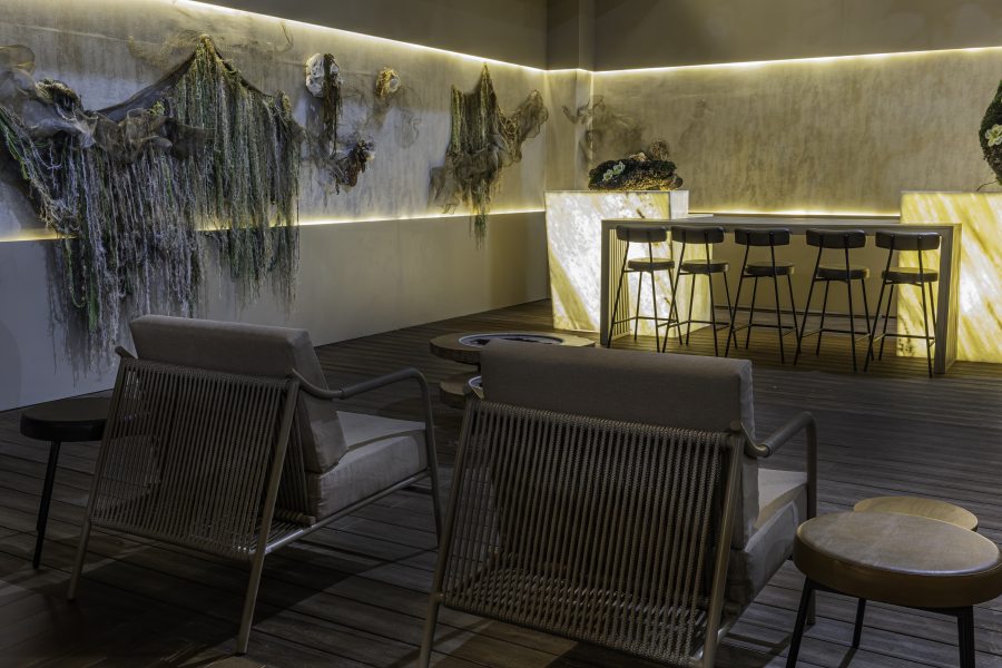 Acreditamos que a qualidade do espaço em que vivemos afeta diretamente o nosso bem-estar e estado de espirito. Cada detalhe do ambiente foi projetado para proporcionar uma experiência sinestésica única, estimulando os sentidos e criando uma conexão harmoniosa entre o homem e a natureza. O resgate de materiais naturais conectado ao todo, já que acreditamos que o maior designer do mundo é a própria natureza. A proposta é experimentar uma atmosfera de paz e tranquilidade dentro de um ambiente comercial.