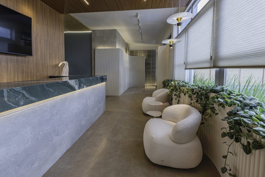 O ambiente foi projetado para transmitir bem-estar, associado ao desejo de funcionalidade com harmonia e o encantamento. Luz, textura, vazios, volumes e ritmos, tudo cautelosamente pensado e elaborado em uma proposta personalizada e única para o Concierge CASACOR 2023. O projeto traduz o bem viver através de detalhes, interações humanas e conexões para a permanência no ambiente. Formas orgânicas, cores neutras e leves, luz quente e aconchegante, poltronas confortáveis e um jardim natural trazendo mais vida e sentido ao espaço.