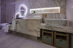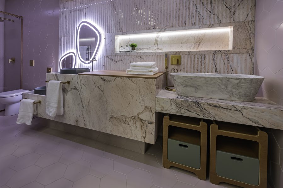 A Casa é um lugar maternal, um lugar de permanência – consequentemente um lugar de lembranças, e através do neurodesign trabalhamos os estímulos visuais, apresentando diferentes revestimentos, acabamentos e detalhes. O TOILETTE RELICÁRIO é a extensão da casa e do íntimo do seu convidado, um ambiente aconchegante, belo e moderno.