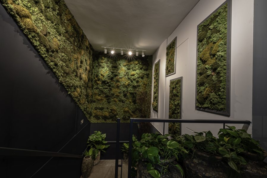 A galeria verde é um espaço onde o ser humano pode se reconectar com a natureza por meio da arte. Composta por musgo preservado, uma planta que cresce na região da Noruega e passa por um processo de preservação que mantém as características de planta viva mas sem as necessidades vegetativas de luz e água. Na nossa galeria, o visitante é convidado a contemplar e a sentir a arte de uma forma profunda e inspiradora, levando consigo um pouco da beleza da natureza para a sua vida cotidiana.