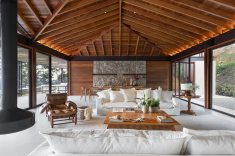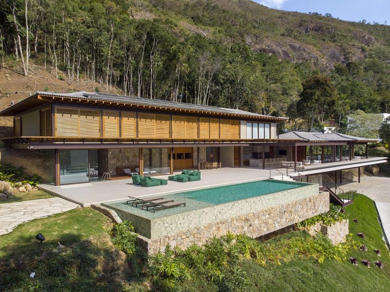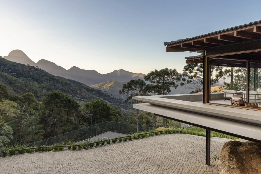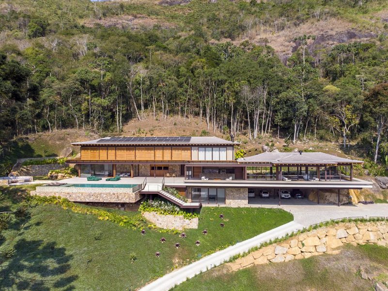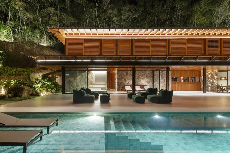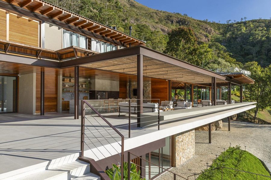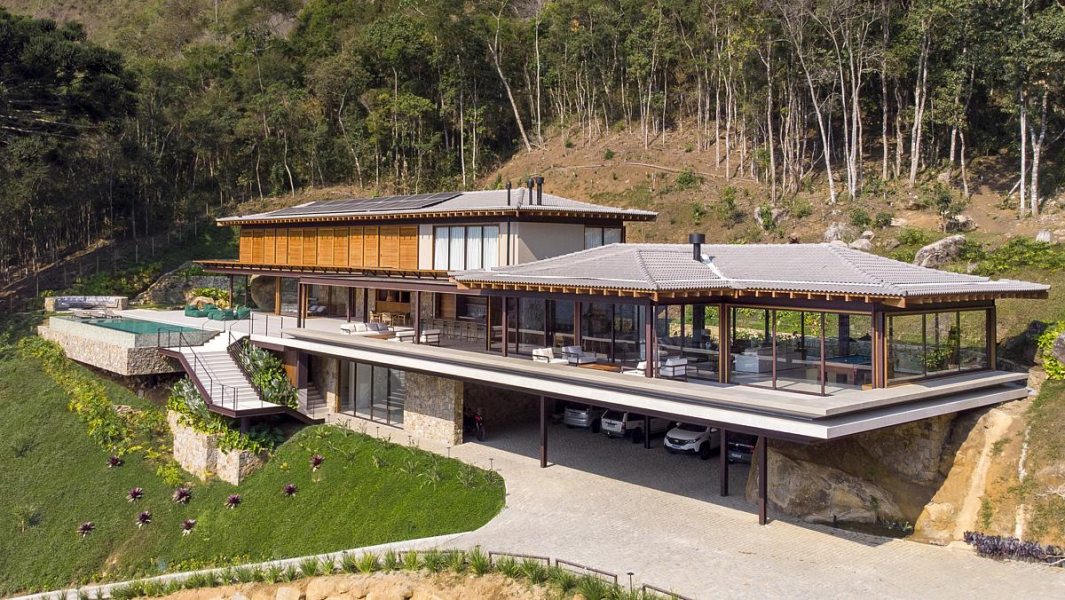Grandes aberturas de vidro, áreas sociais integradas e espaços externos voltados para a vista completam o conjunto, que transforma a topografia acidentada em parte essencial da experiência da casa. Confira abaixo em nossa galeria de imagens.