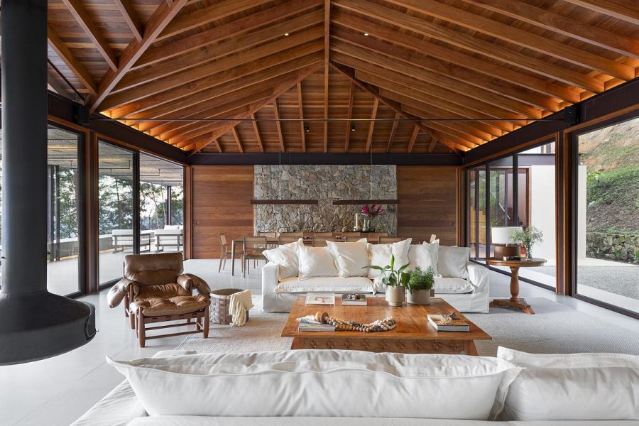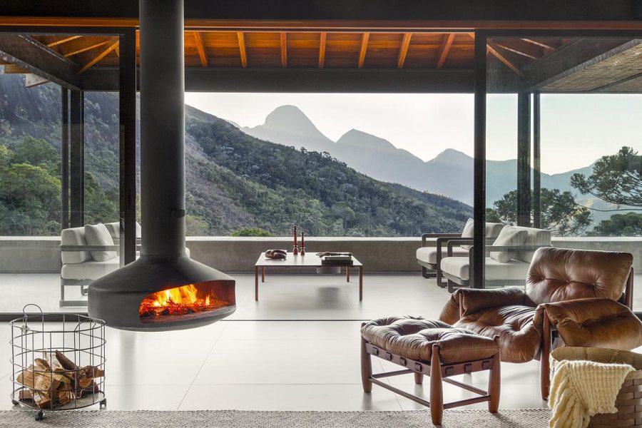 Os cômodos foram projetados e posicionados para que sempre aproveitem ao máximo a vista privilegiada. Grandes aberturas de vidro trazem luz natural para o interior e garantem transparência e fluidez entre o interior e o exterior.