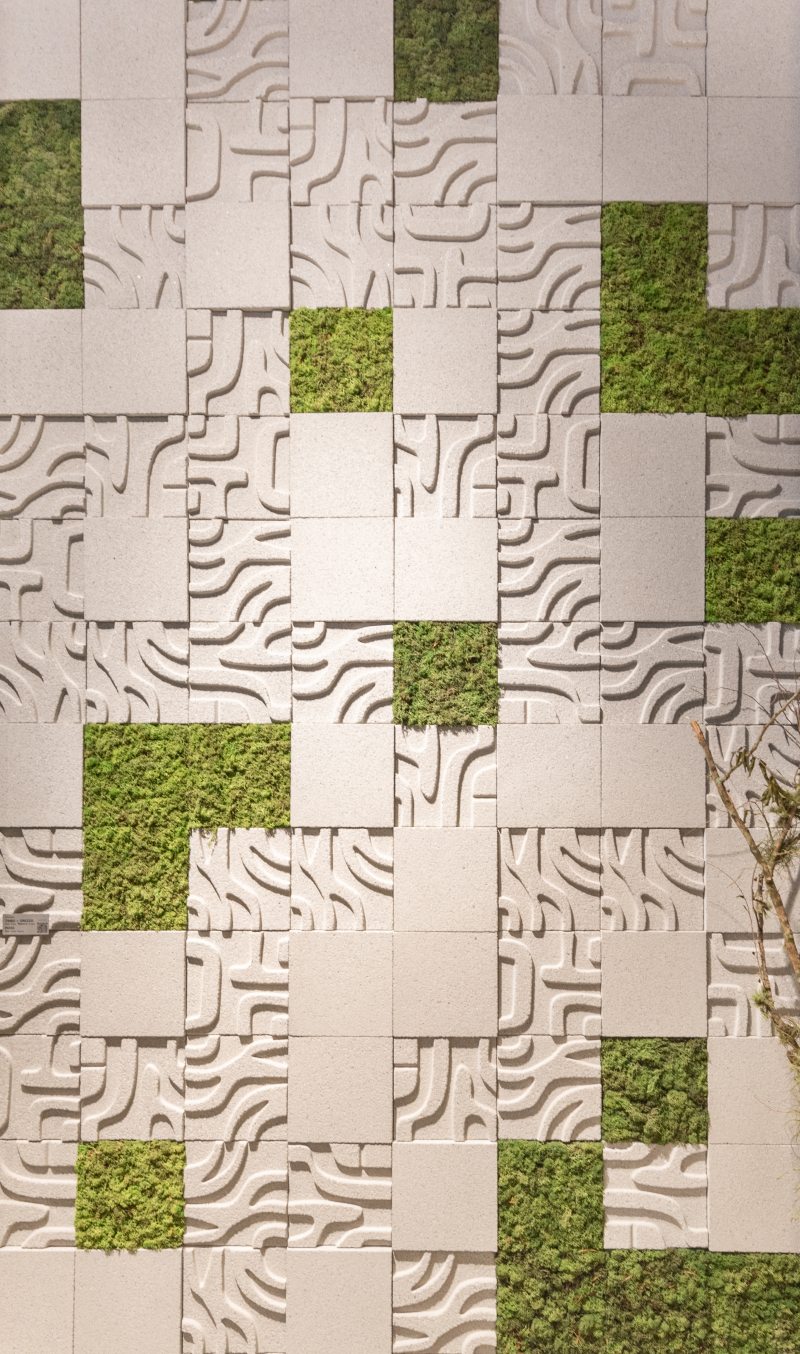 Disponível em três formatos distintos e nas cores Verde Bosque e Verde Tropical o revestimento Moss pode ser combinado com diversos revestimentos da Castelatto, possibilitando paginações criativas e repaginações práticas que introduzem a natureza aos espaços construídos.