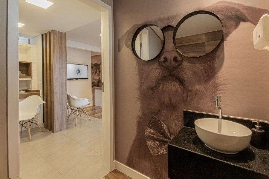 Além do desafio de converter a residência em um imóvel comercial a reforma apresentou outros obstáculos: atender às exigências da vigilância sanitária, encontrar materiais duráveis de fácil manutenção e, ainda, traduzir no décor o carinho das veterinárias pelos pacientes bichinhos (sem descaracterizar o aspecto institucional).