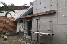 A solução foi renovar totalmente a fachada utilizando placas cimentícias recobertas com porcelanato para mudar a volumetria do imóvel e dar a ele um aspecto mais "comercial". Com esta medida o local ganhou "cara nova" e ainda destacou o nome e a logomarca do empreendimento."Participamos junto com as sócias da elaboração da logomarca e indentidade visual. Aproveitamos esta colaboração e aplicamos a paleta de cores também ao décor" - destacou a arquiteta.