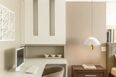 “Acreditamos que a iluminação contribui diretamente na atmosfera do local. Como as instalações íntimas são locais de descanso e relaxamento buscamos itens que contemplassem a luminosidade mais cênica. As luminárias de cabeceira (tanto pendente quanto arandela) foram excelentes opções, sendo que a Grey House auxiliou no projeto com diversos produtos de ótima qualidade e prestando excelente atendimento”.