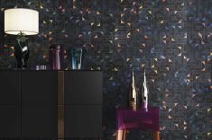 Moderna, vibrante e com inspiração na transição das cores do arco-íris, a Rainbow traz tons luminosos em degradê, inseridos em um delicado emaranhado de linhas e formas. A composição das cores com o fundo escuro da peça define pontos vibrantes na parede.