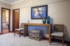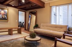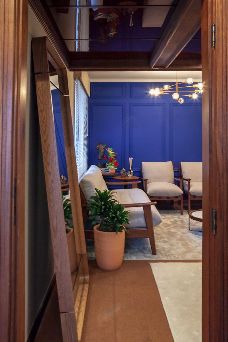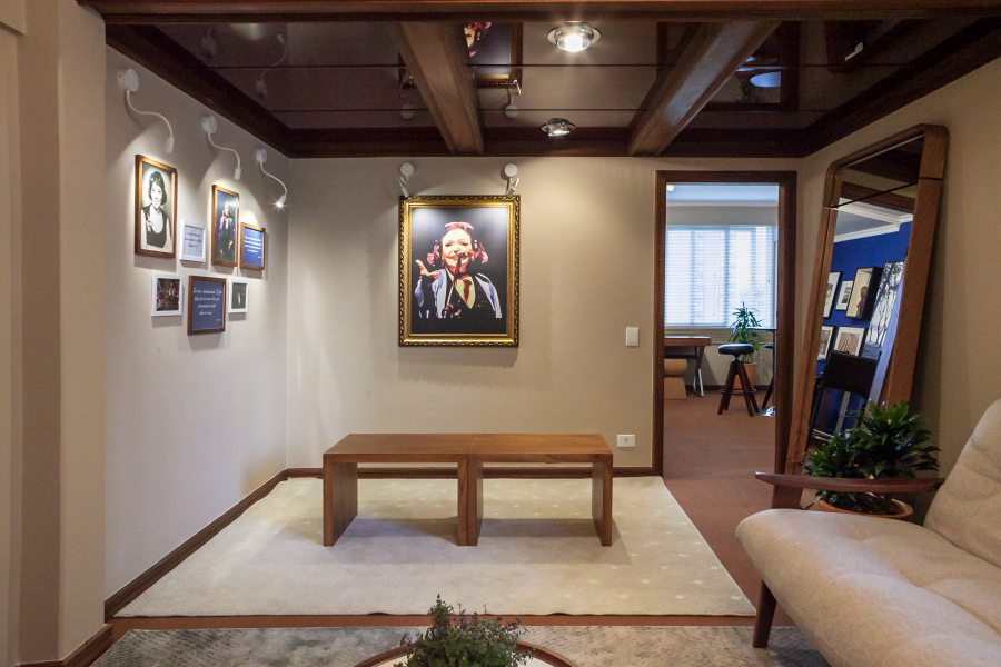Uma linha clássica predomina nos móveis. “No nosso levantamento de informações para o processo criativo soubemos que Bibi Ferreira não comprava móveis, gostava de reutilizá-los, ganhando muitas peças, sendo a maioria com design clássico”, explica a arquiteta Manuella de Fraga. Todos os móveis e os tapetes escolhidos para o espaço são da Black Home Design, como a poltrona Luisiana, em couro marrom, exclusiva da marca. Os lustres pendentes e materiais de iluminação utilizados pela 4F Interiores no projeto são da marca curitibana Luna Luce.