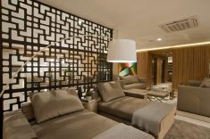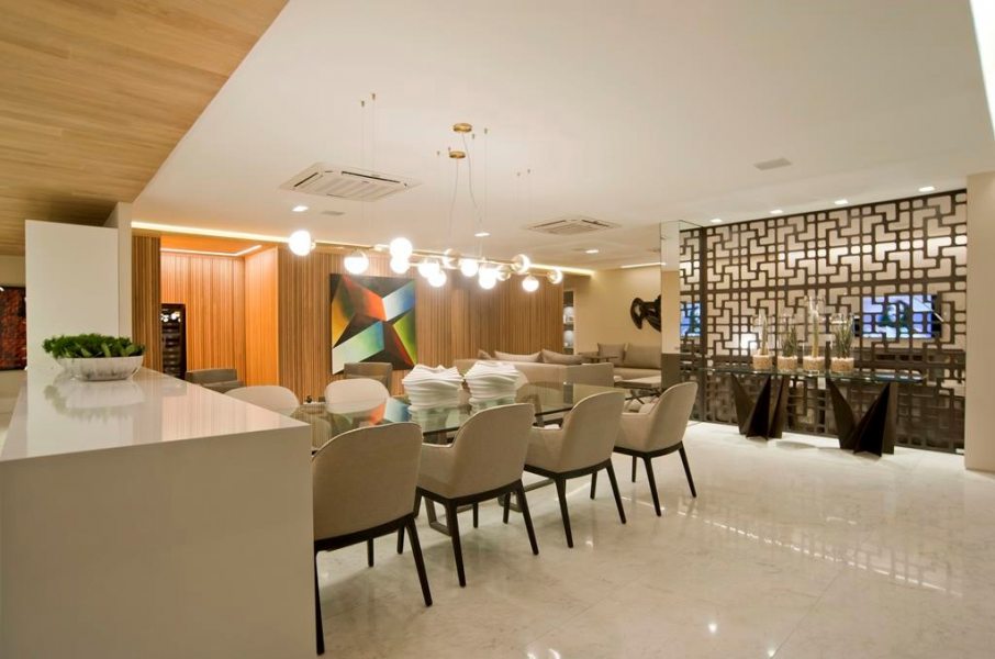 Cada ambiente contou com o estilo e olhar diferenciado de Jayme Bernardo, que ficou encarregado das áreas do hall, salas de estar e jantar; Viviane Loyola, com as suítes, sala íntima e home office e Marcos Soares, varanda gourmet, cozinha e área de serviço. O resultado final revela o grande potencial dos apartamentos, que foram todos desenvolvidos com mobiliário da Artefacto.