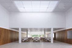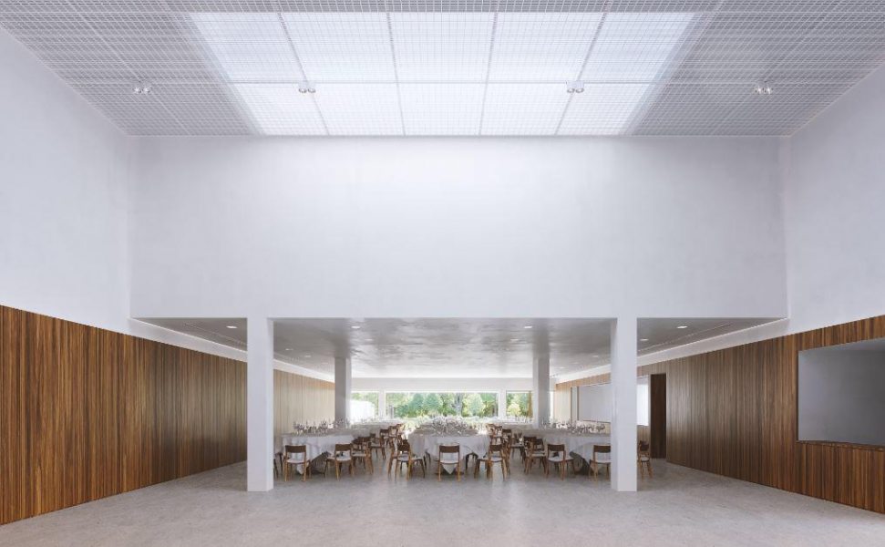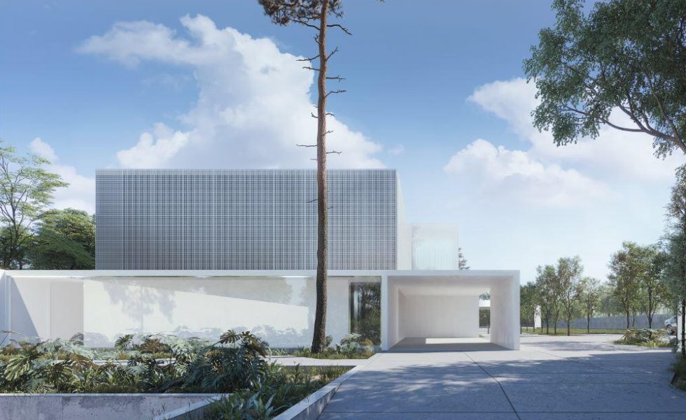 No novo centro de eventos a pureza das linhas arquitetônicas será destacada pela pintura branca nas fachadas e nos interiores. A área externa será revestida por micro-cimento Ghost, da Monofloor, enquanto a lateral do edifício antigo receberá painéis-grelha para textura e contraste. A área de circulação dos funcionários contribuirá para o efeito cênico do projeto graças a laterais em vidro autoportante. Confira todas as imagens em nossa galeria!