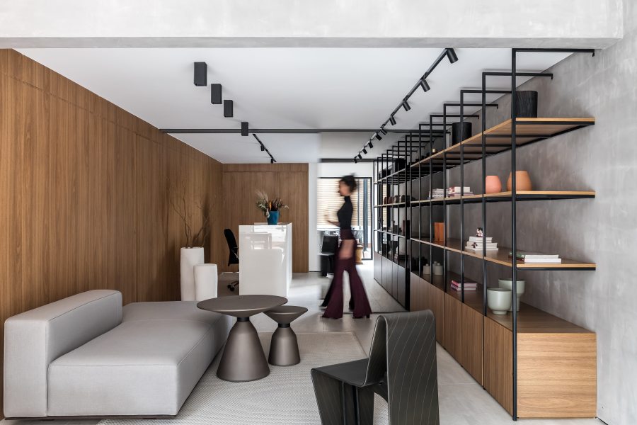 Onde: Curitiba • 18 de Janeiro - 2021 |O projeto idealizado pelo Studio Boscardin Corsi para a nova sede de uma construtora paranaense apostou em espaços multifuncionais e mobiliário contemporâneo da Momenttum