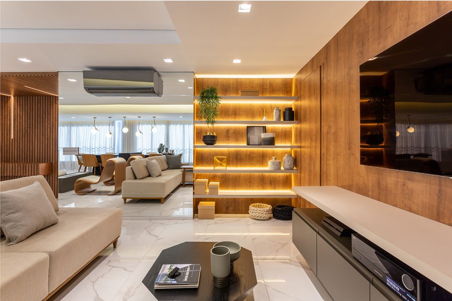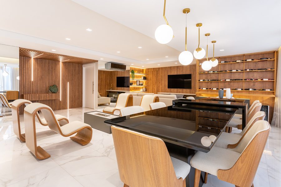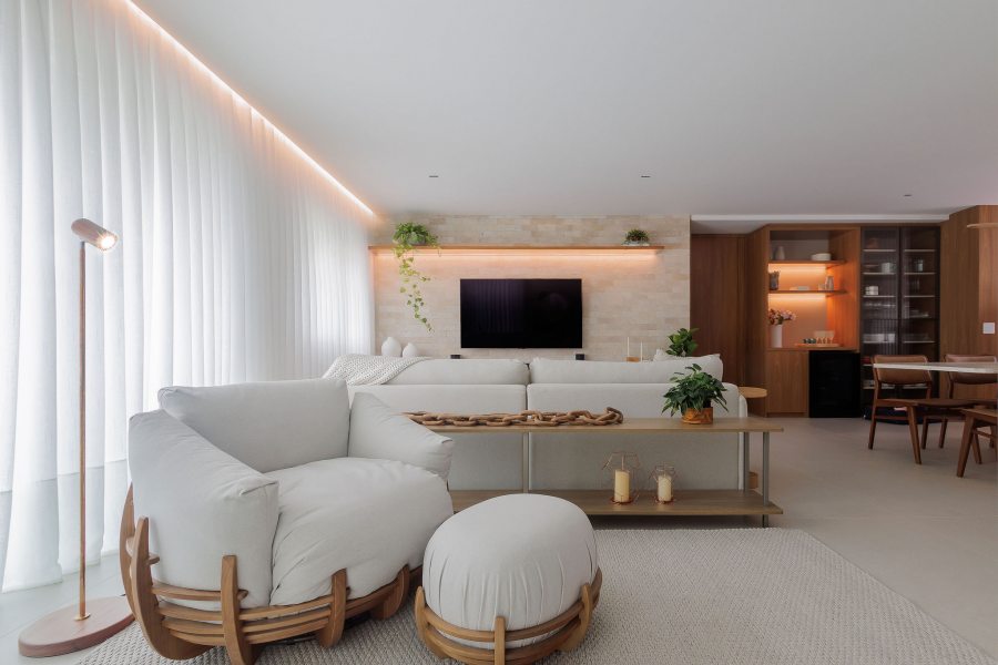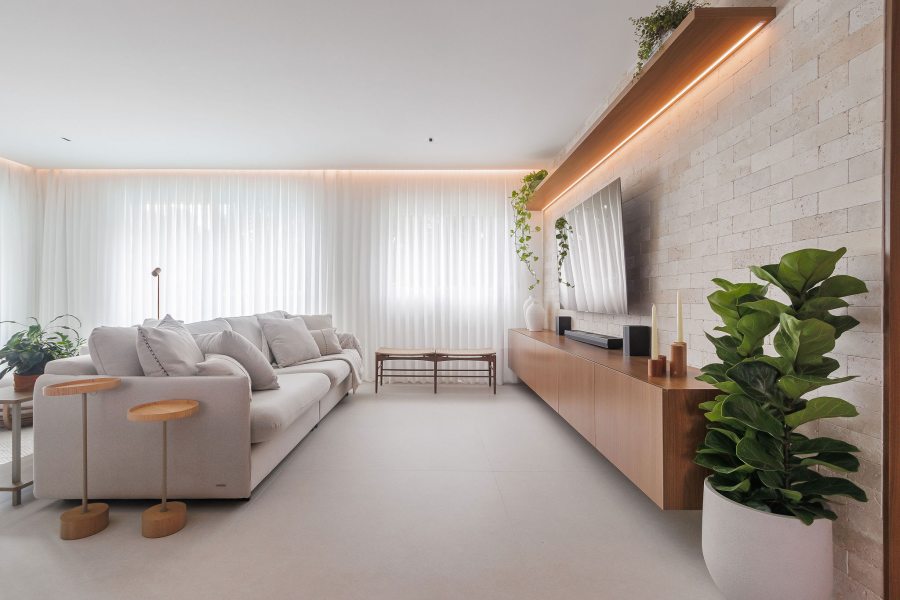 A arquiteta Eliza Schuchovski assinou a reforma do apartamento de aproximadamente 200 m² no edifício Pinah, revelando um lar contemporâneo, sofisticado e acolhedor. Com um projeto autoral, o imóvel recém-entregue ganhou uma nova leitura de bem-estar, refletindo com elegância a personalidade e o estilo de vida dos moradores.