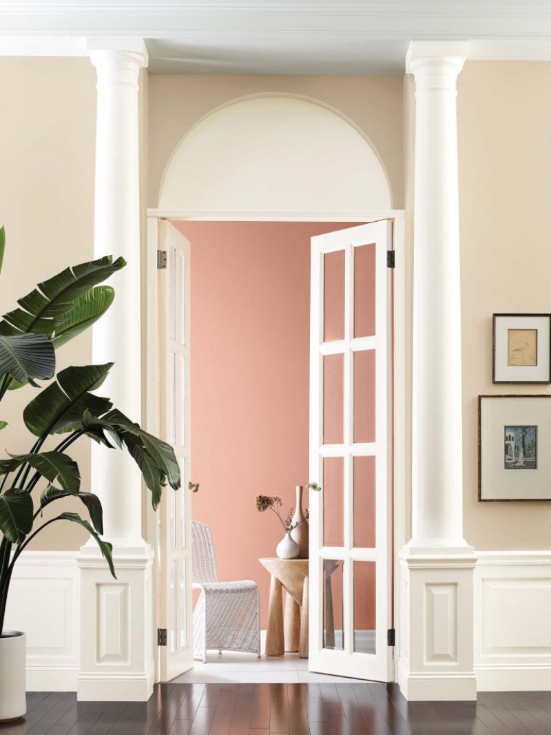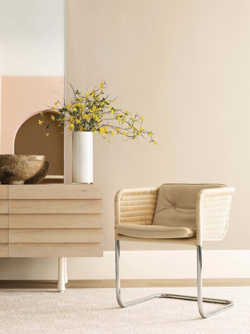 Baseando-se nos processos da natureza, a paleta Maneira celebra a ordem natural e o equilíbrio entre neutros orgânicos e luxo tonal. Esta paleta encontra sua inspiração no Art Déco, orgânicos modernos e pós-modernismo dos anos 1980. O terroso suave de Papel de Arroz SW 7042 se une à sensualidade de Neblina Perene SW 9107, culminando em uma harmonia crua, porém refinada.