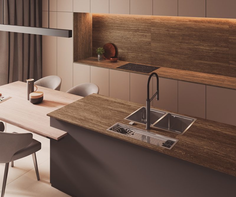 Onde: • 12 de Fevereiro - 2024 |Ao considerar a cozinha como um espaço terapêutico e funcional, é importante saber escolher os materiais mais funcionais para o trabalho, como cubas e torneiras
