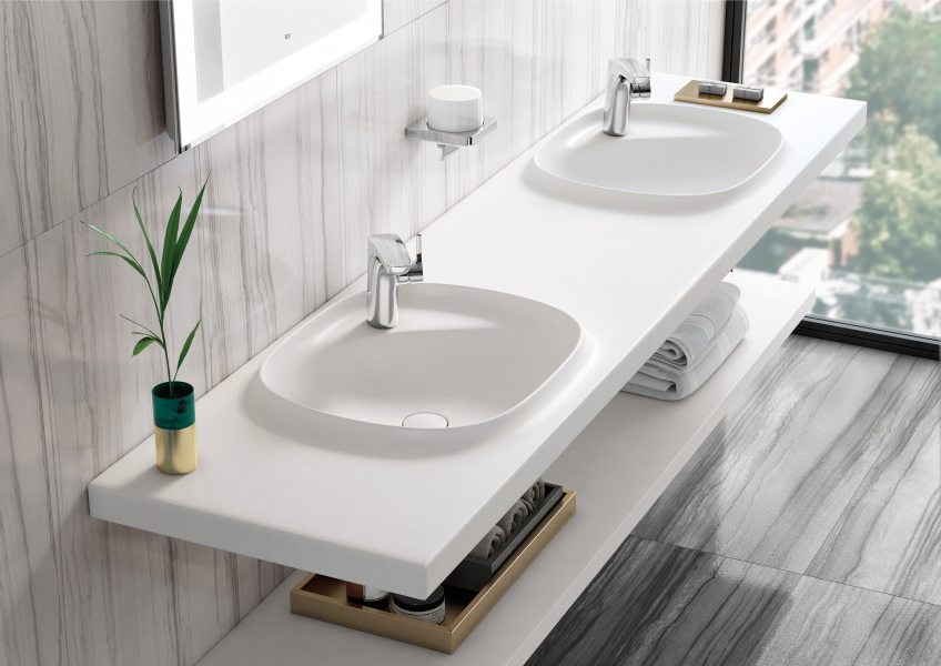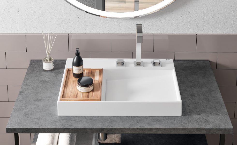Oferecendo elegância e múltiplas opções de design, a cuba de sobrepor da Coleção Optica evidencia formas leves, porém definidas, que contribuem para a construção de uma estética agradável que combina tanto com banheiros amplos, como com espaços menores. | Foto: Divulgação Roca