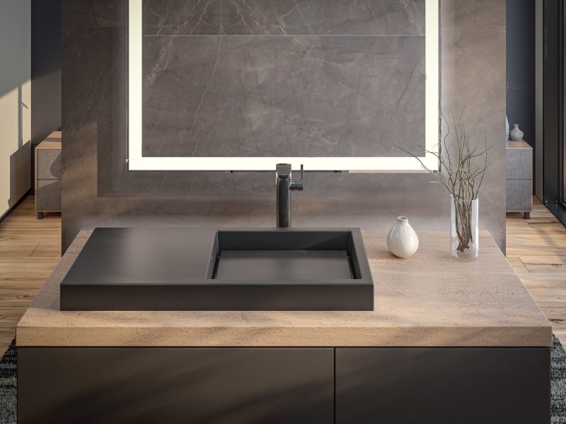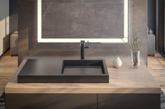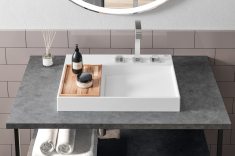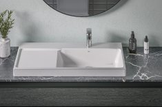 Com parte da cuba embutida no móvel, as bordas da cuba de sobrepor ficam acima da bancada, deixando-a livre para proporcionar uma estética mais clean. Na imagem, a cuba Horizon Skyline 80, que integra a coleção assinada pelo renomado arquiteto João Armentano. A peça agrega um requinte único para o banheiro | Foto: Divulgação Roca