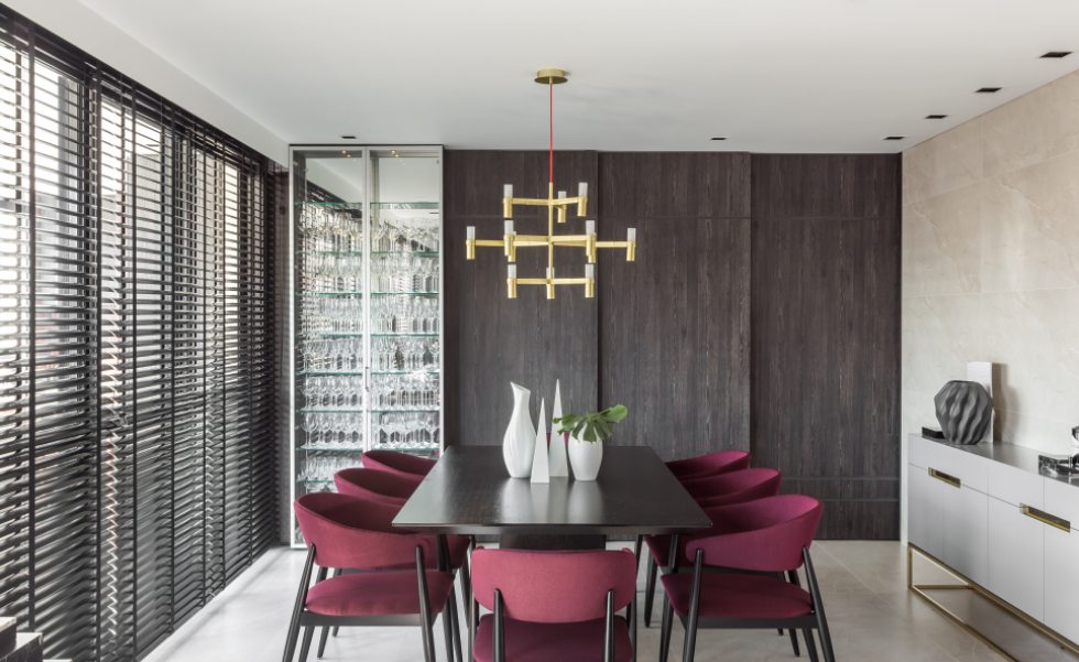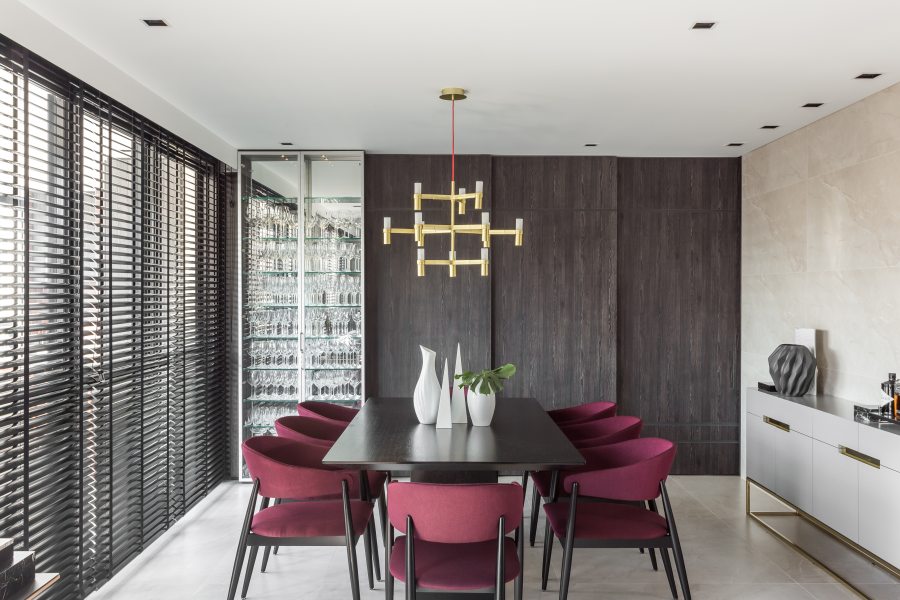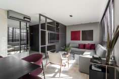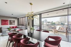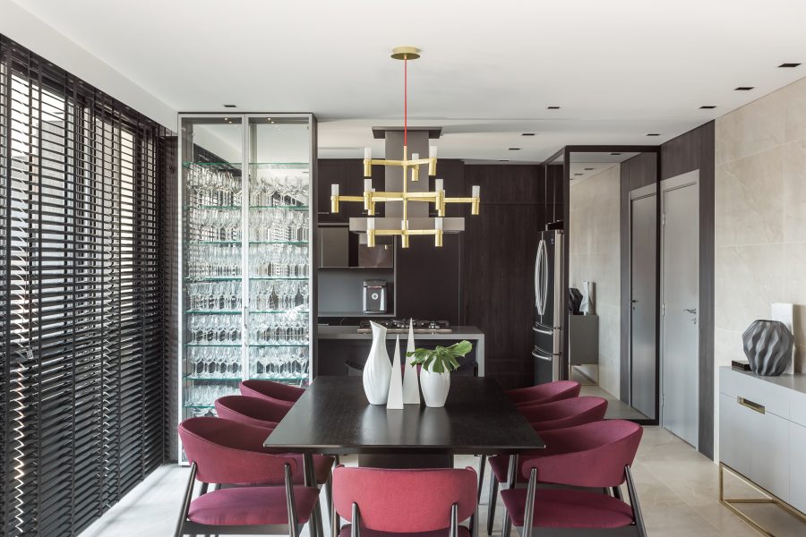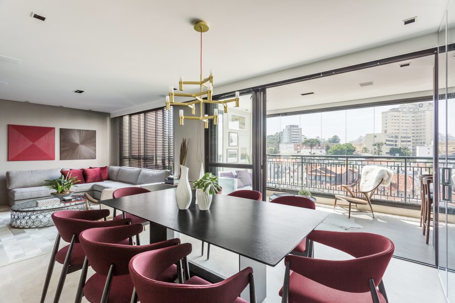 Onde: Curitiba • 07 de Junho - 2019 | Fotos Eduardo MacariosApartamento em Curitiba, projetado pela arquiteta Talita Nogueira, traz a cor borgonha como estrela principal e surpreende com mobiliário de design arrojado