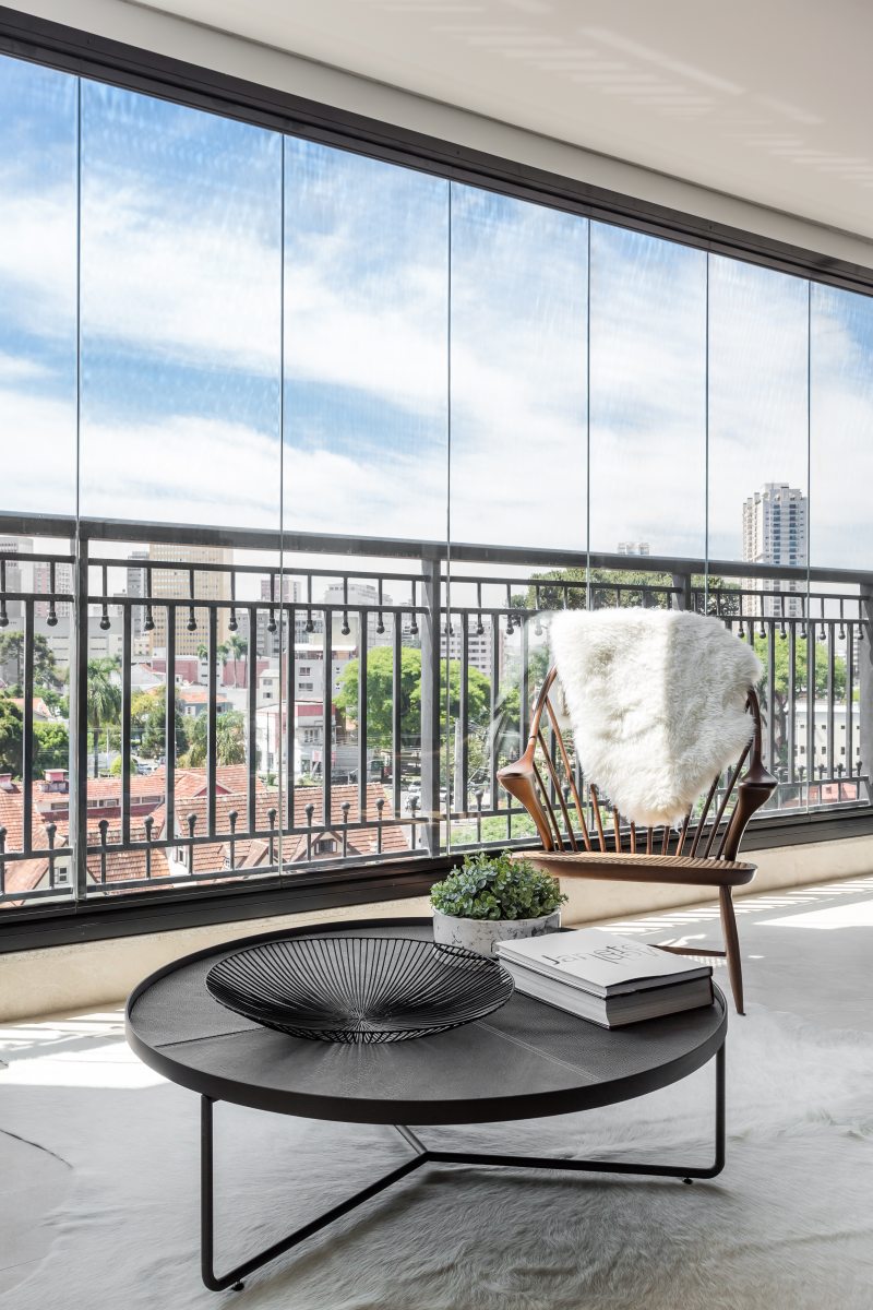 Situado no bairro Alto da Glória, o imóvel havia sido recém adquirido da construtora. Um dos desejos dos proprietários – um casal jovem com duas filhas pequenas – era ter um espaço amplo para convívio mais próximo com total conforto. Para tanto, a planta foi alterada para ficar mais aberta: pontos de TV e água foram realocados e o piso da sacada elevado para conectá-la à sala de jantar e living.