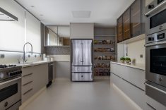 Este apartamento de 280m² no Ecoville, em Curitiba, é o lar de uma família de quatro pessoas que confiou à arquiteta Ediane Tramujas a tarefa de criar ambientes funcionais, confortáveis e que privilegiassem a interação. Partindo de uma paleta de cores monocromática, toda em variações de creme e off-white, a arquiteta apostou em peças sofisticadas da Ton Sur Ton e mobiliário sob medida com diferentes acabamentos em laca.
