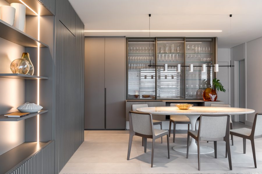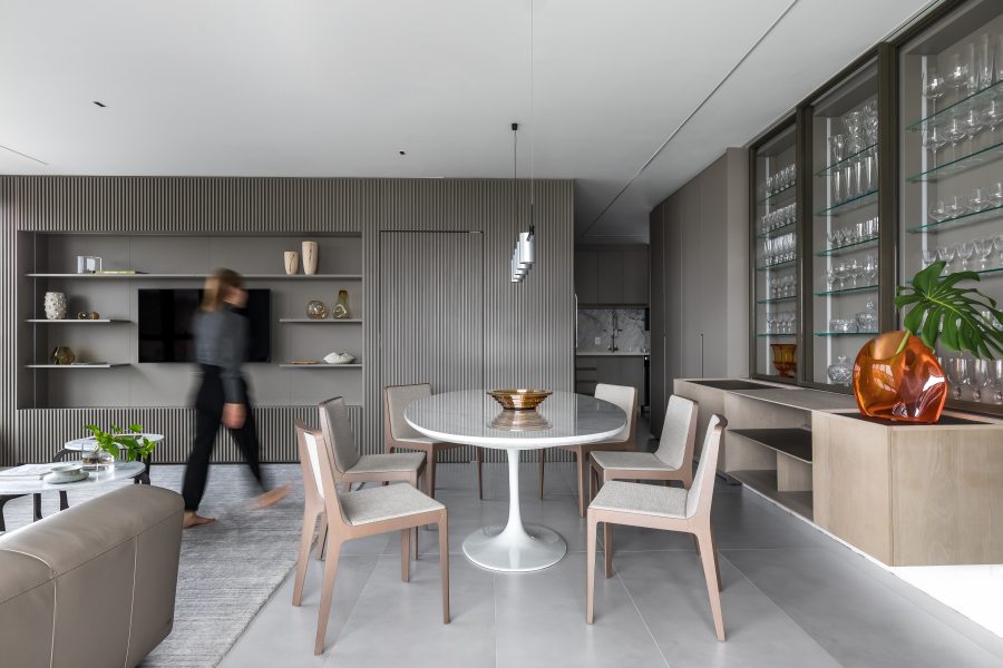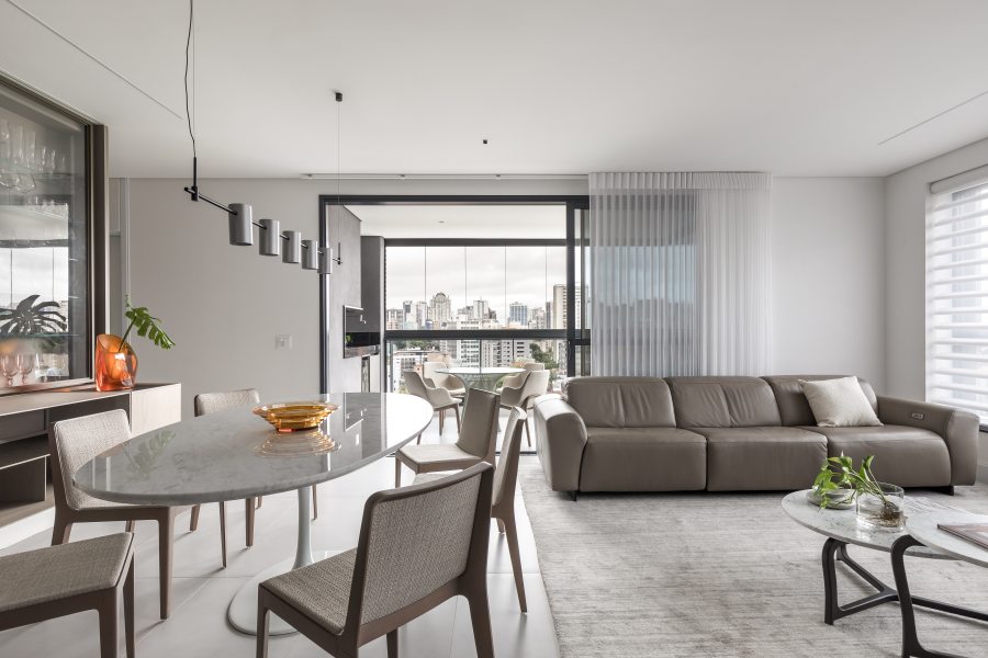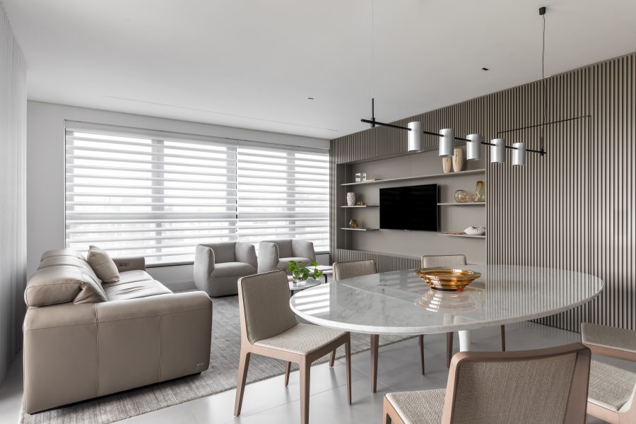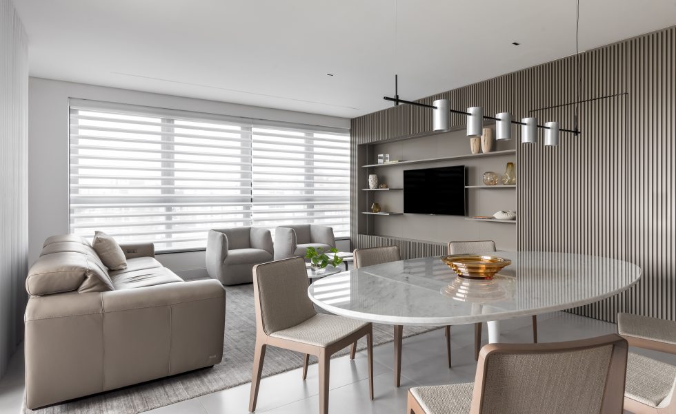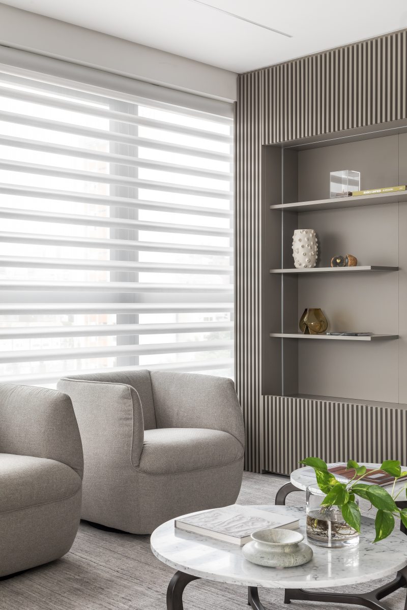Além da paleta de cores neutra e do layout integrado, o mobiliário confortável da Ton Sur Ton foi determinante para alcançar a estética minimalista idealizada para o projeto. “Desde o início do projeto a equipe da Ton Sur Ton foi muito receptiva, oferecendo um amplo portfólio de marcas renomadas. O suporte prestado pela equipe, a qualidade das peças, o design diferenciado e a funcionalidade das soluções propostas fizeram dela uma grande aliada do projeto.” – elogiou Eliza.