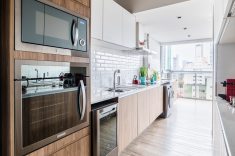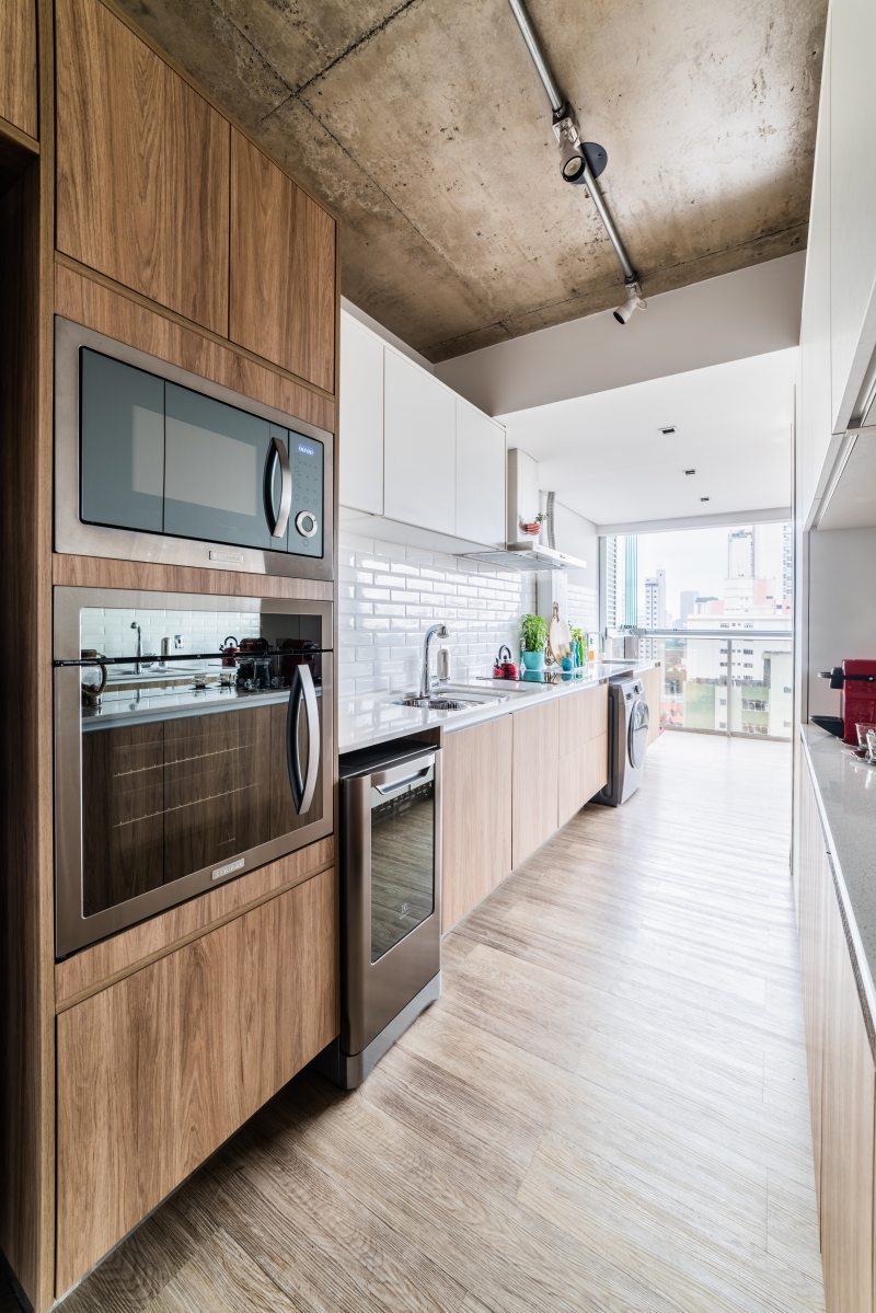 Acima: nessa cozinha o forno e o micro-ondas foram embutidos na marcenaria, deixando mais espaço na cozinha-corredor | projeto: Liv’n Arquitetura