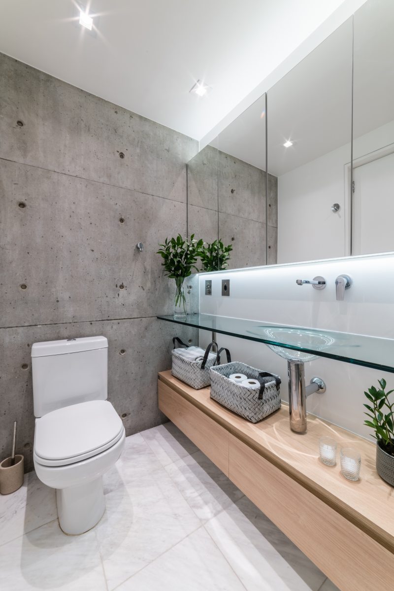 Nesse banheiro, a iluminação bem distribuída melhorou a impressão de espaço. | Projeto: Liv’n Arquitetura