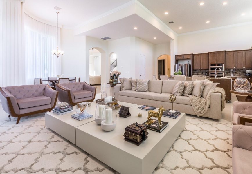 Para o projeto de interiores desta luxuosa mansão de 600 m2 em Windermere (Flórida), a designer de interiores Flavia Gueiros apostou na valorização do clássico.