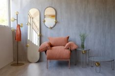 Um dos diferenciais está no alto nível de personalização. Cada móvel pode ser configurado a partir de diferentes combinações de cores, tecidos e acabamentos metálicos, criando centenas de possibilidades. O processo de criação acontece no estúdio interno da marca, responsável pelo desenvolvimento das coleções.