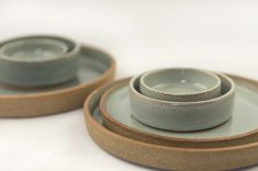 Uma marca que merece destaque é a Arquitetura da Mesa, conduzida pela ceramista Dani Costa, com sua iniciação artesã já dentro de casa, em uma família com histórico feminino forte no artesanato. Graduada em arquitetura, sua grande paixão, Dani traz traços geométricos puros, leveza e sofisticação às suas criações.