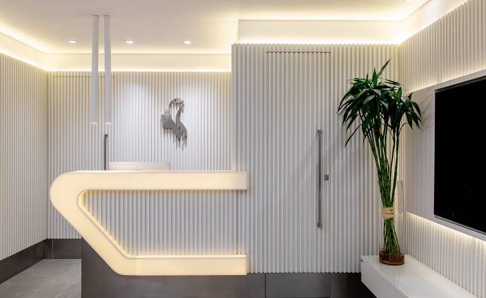 O belo resultado final contou com revestimentos ripados nas paredes, luminotécnico refinado e móveis fixos sob medida. O design inovador e a paleta de cores clara deixaram os ambientes ainda mais luxuosos. Cercados por tanta beleza, certamente os futuros frequentadores terão a certeza de estar em boas mãos.