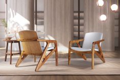 A MSul, traz uma linha de produtos que atende o mercado nacional e internacional, entre elas a poltrona Versa (foto acima). Assinada pelo designer Aciole Félix, a peça distingue-se por seu encosto formado por um duelo de conchas anatômicas e estofadas de forma generosa e envolvente. Juntamente com sua estrutura, fabricada em madeira maciça, destacam-se seus chanfros e longas diagonais tornando-a única e encantadora.